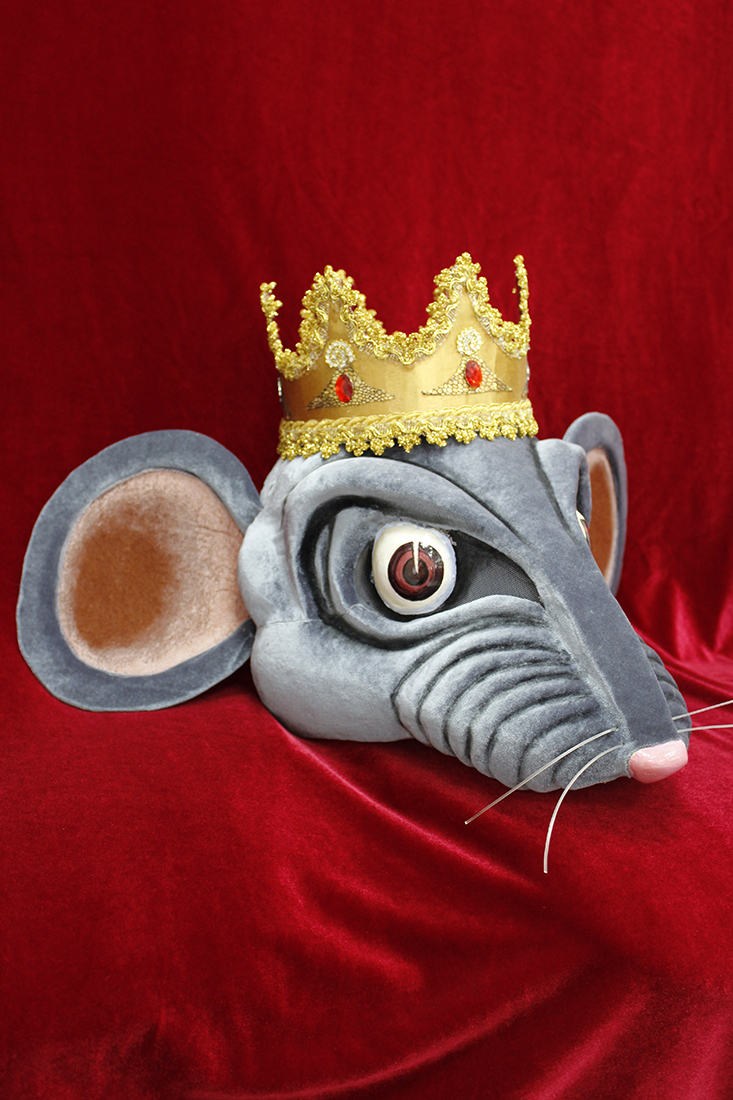 Mask created especially for the role of Rat King in papier-mache technique and is covered with beautiful gray velvet. Eyes are made of mesh so the dancer could see everything performing in this mask.Â
