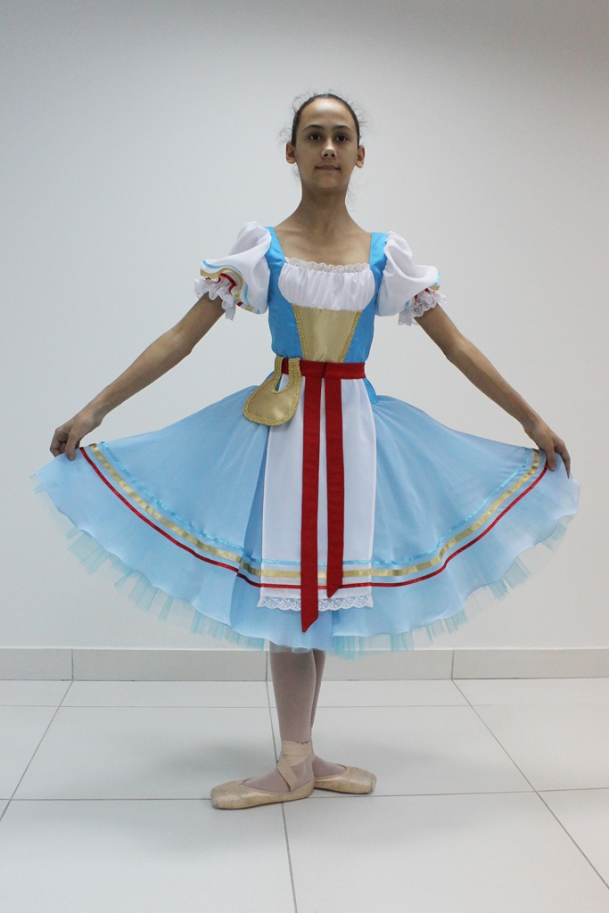 This beautiful peasant costume as created for the role of Garda in "The Snow Queen" ballet but can be used for the other peasant variations.