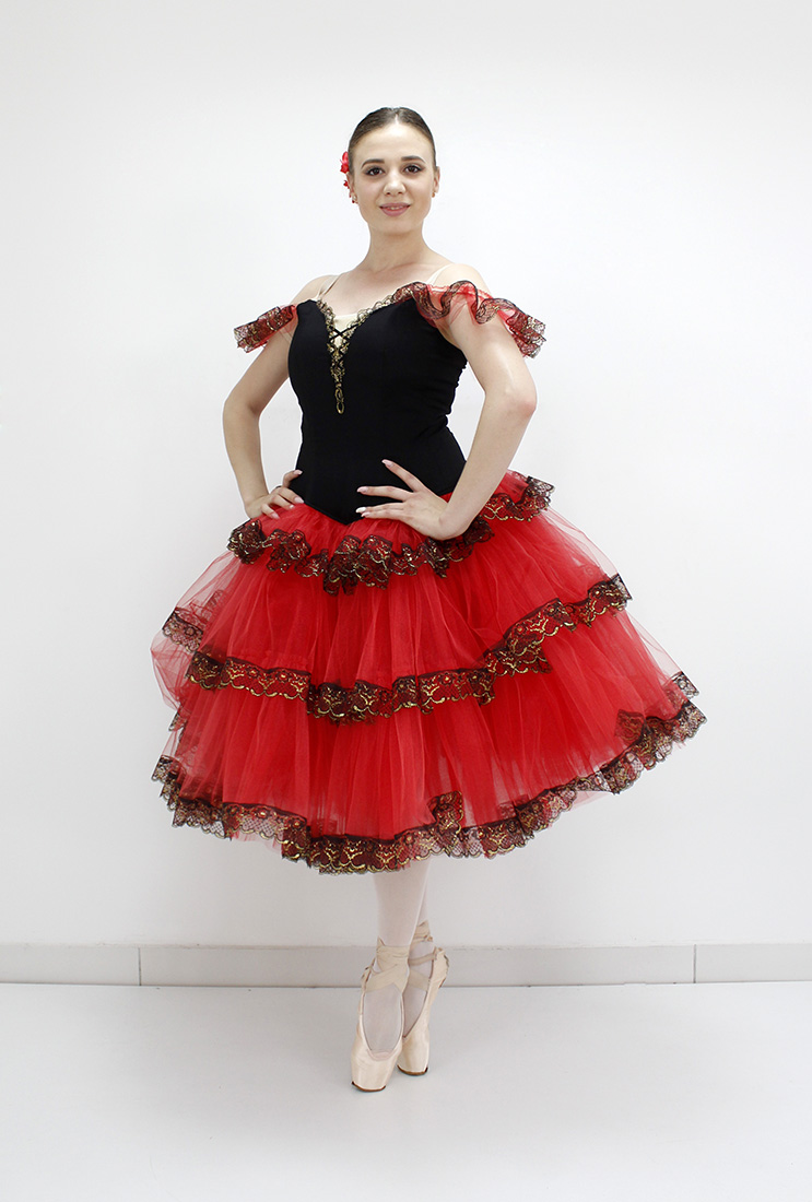This stunning costume was created for the role of Kitri in "Don Quixote" ballet but can be used for any other Spanish variation.Â