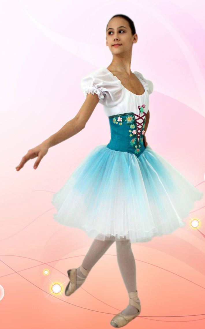 It is a professional stage costume in peasant style which is made on the basis of the professional basic romantic tutu.