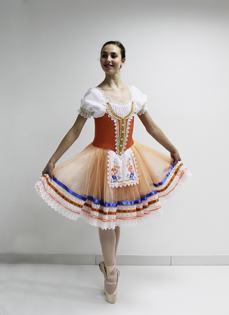 It is a professional stage costume in peasant style, which is made on the basis of the professional basic romantic tutu.