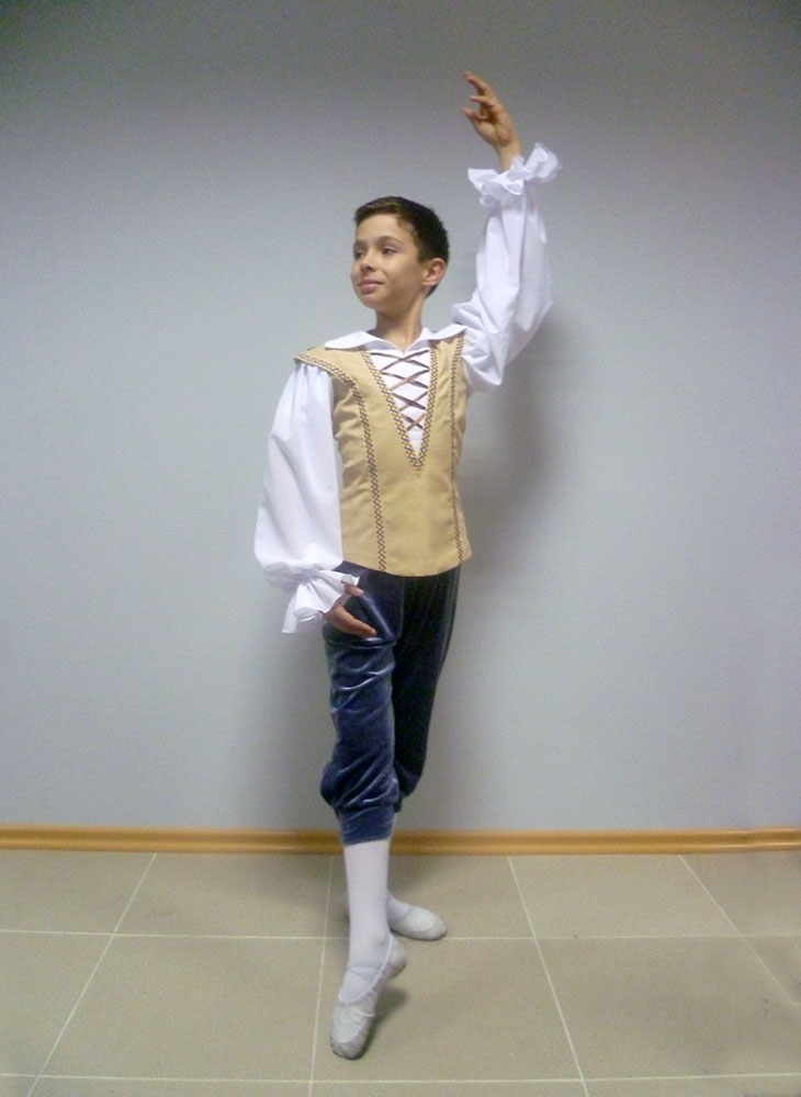 This costume perfectly suits for the role of Albrecht – the 1st act in the ‘Giselle’ ballet and other variations regarding this style, for example ‘Napoli’ and  for any  other peasant role.