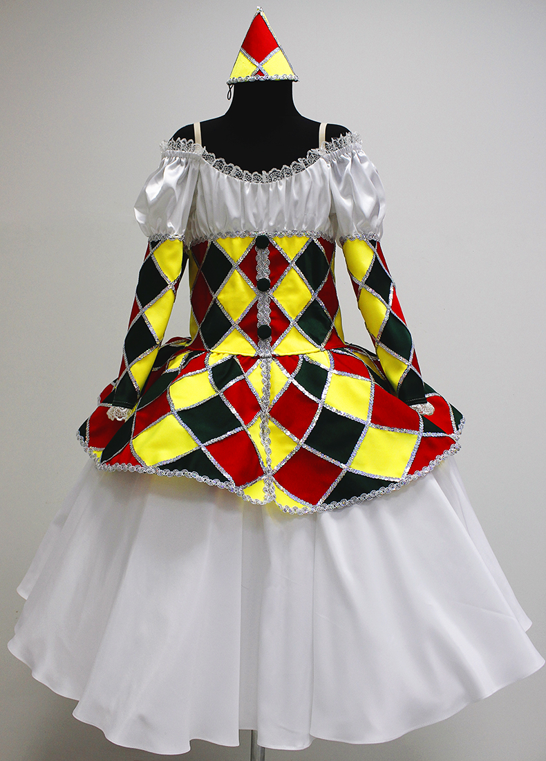 This costume was created for the role of Columbine doll, but also can be used for Harlequinade variation.Â