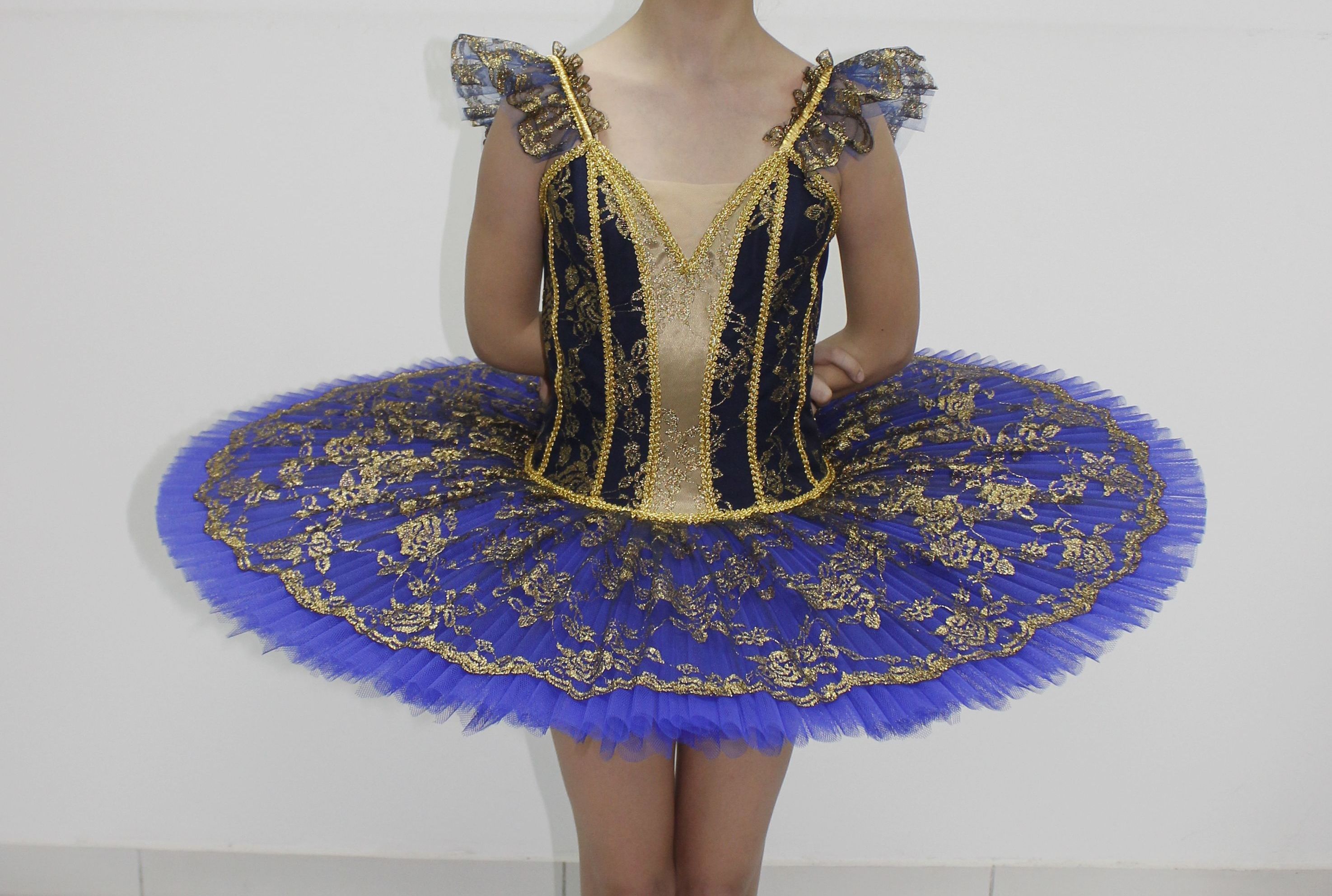 The tutu of blue tulle, the overlay is of gold guipure.