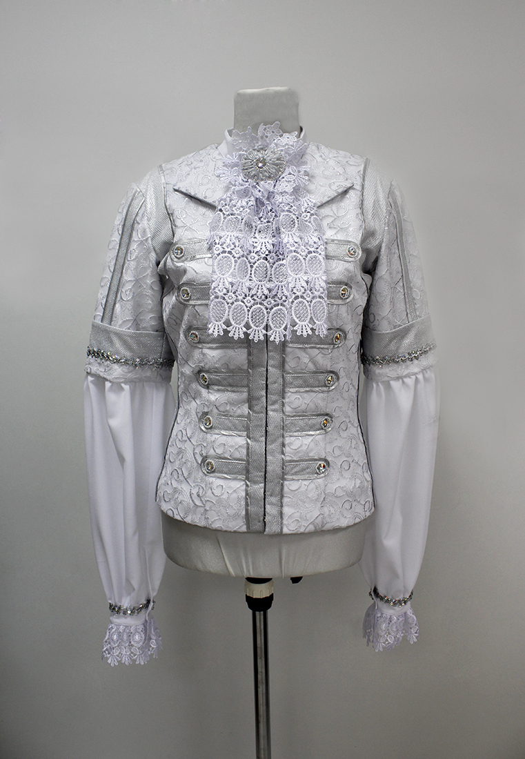 Professional male tunic is made of dense fabric doubled with lace (gold or silver). Sleeves are made of crepe chiffon and are edged with magnificent white lace.Â