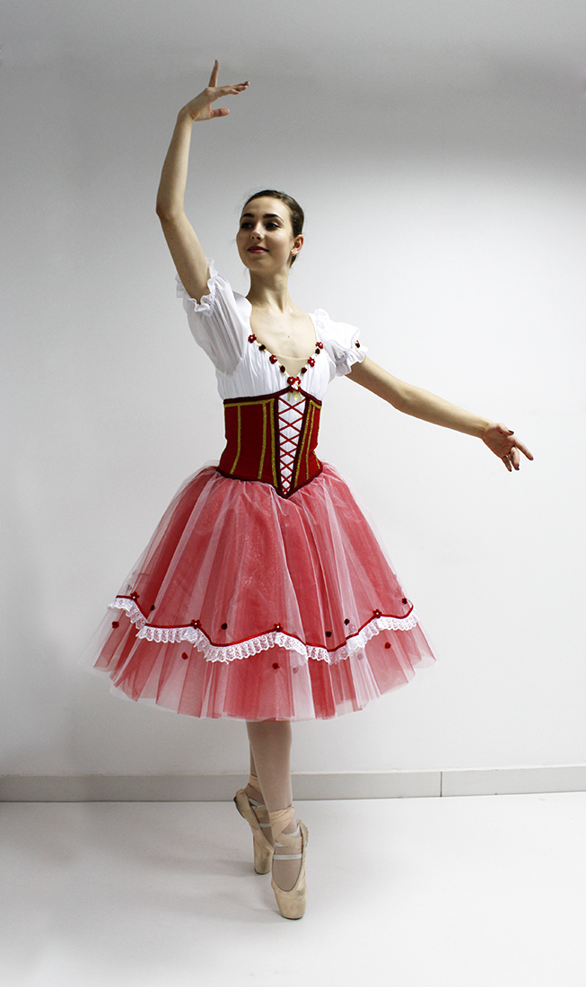 This costume perfectly suits for Giselle variation, but can be used for such ballets as Coppelia, Snow White and Napoli.Â