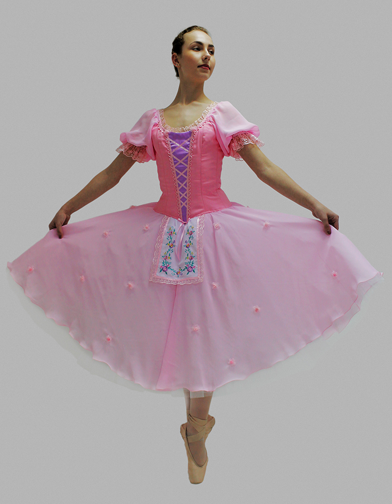 This beautiful dress in peasant style was created especially for the role of Lise in "La Fille mal gardée" ballet but alo can be used in the other peasant style variations.Â